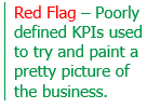 That said, red flags go up when we see KPIs that shape shift over time, which are defined poorly and seem to be more about painting a pretty picture of the business than best depicting what is really going on.
