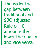 In the top quartile we see the SBC adjusted Rule of 40 companies garnering a bit higher multiple than if ranked under the more traditional metric, does that indicate the market is rewarding a higher quality Rule of 40? On the other end the bottom quartile companies are also getting a higher multiple after we adjust for SBC costs, could that indicate that there are some lower quality Rule of 40 companies that the market still needs to take a closer look at?